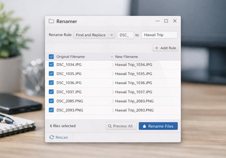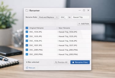 A fast and flexible renamer that lets you batch rename multiple files at once using custom rules, saving time and keeping your files consistently organized.