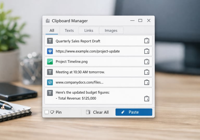 A lightweight clipboard manager that securely stores and organizes your copied text, links, and images so you can quickly access, reuse, and manage them anytime.